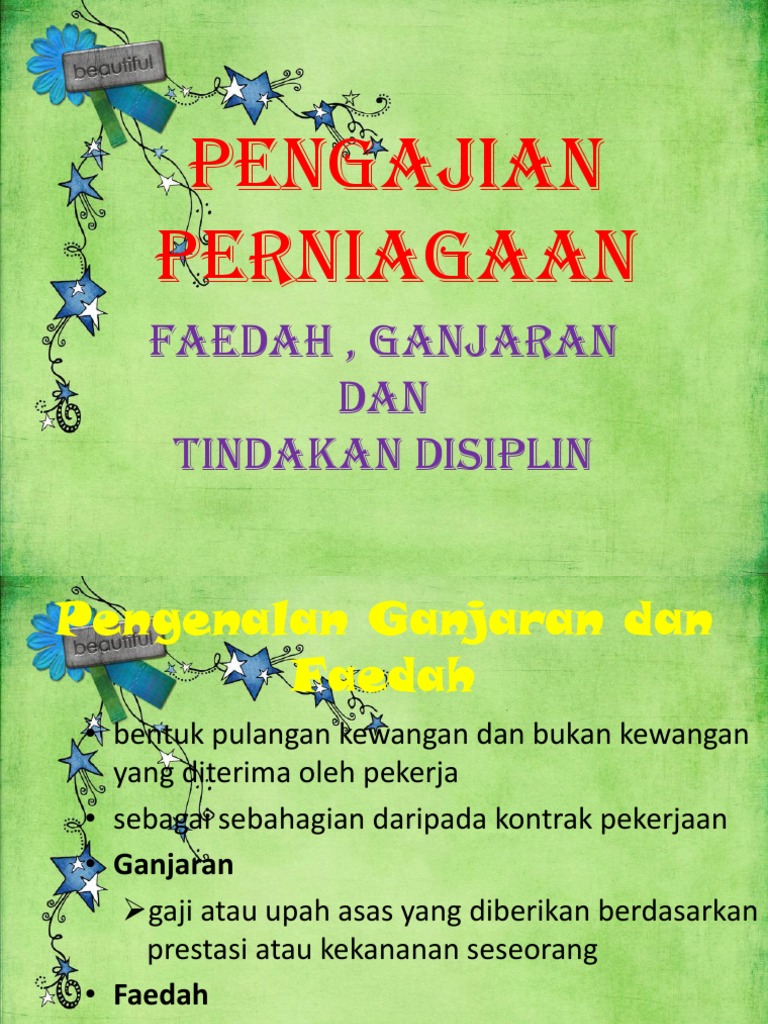 Faedah-insentif yang diberikan kepada pekerja yang bertujuan untuk menjadikan skim pampasan yang lebih. Faedah Ganjaran dan Tindakan Disiplin. PERNIAGAAN 6 Calon seharusnya dapat.