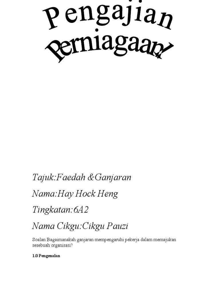 Organisasi menawarkan pelbagai bentuk ganjaran bagi menrik minat ramai pekerjan serta mengekalkan pekerja yang diterima itu dalam organisasi. 111 P er niagaan dan buk. BAB 1 -PENGURUSAN PENGAJIAN PERNIAGAAN 1.